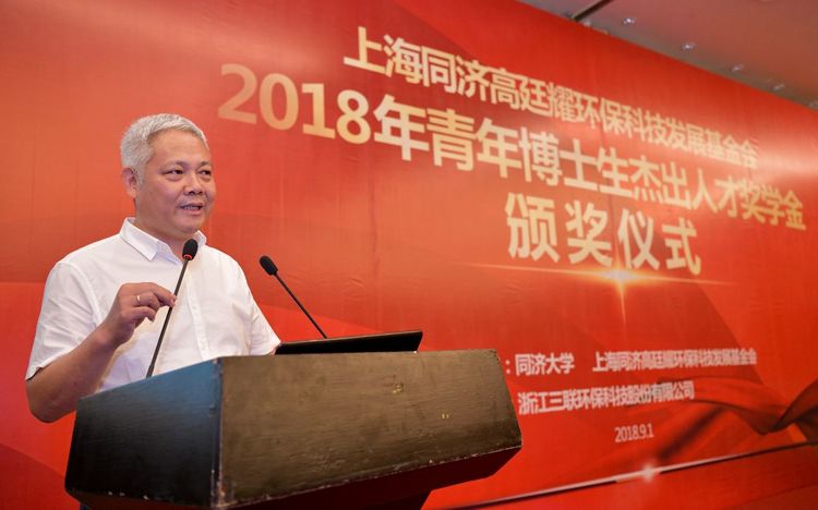 方守恩書記在致辭中代表同濟(jì)大學(xué)對(duì)獲獎(jiǎng)的各位優(yōu)秀青年博士生表示祝賀,對(duì)給予此次活動(dòng)大力支持的浙江省麗水市人民政府、麗水市恒力離心機(jī)械設(shè)備有限公司以及長期支持基金會(huì)不斷發(fā)展的江蘇維爾利環(huán)??萍脊煞萦邢薰颈硎局孕牡母兄x。他說,基于對(duì)生態(tài)文明建設(shè)和環(huán)境保護(hù)重要性的認(rèn)識(shí),在高廷耀老校長的倡議下,同濟(jì)大學(xué)于2003年正式成立了上海同濟(jì)高廷耀環(huán)??萍及l(fā)展基金會(huì)。十五年來,基金會(huì)始終不忘初心,積極致力于“培養(yǎng)新一代環(huán)保專業(yè)新型人才;促進(jìn)中國環(huán)保高新技術(shù)(產(chǎn)品)的研制和科技交流與發(fā)展”,為我國高級(jí)環(huán)保青年人才培養(yǎng)和環(huán)保產(chǎn)業(yè)可持續(xù)發(fā)展,發(fā)揮了積極的推動(dòng)和引導(dǎo)作用。黨的十九大報(bào)告提出,實(shí)現(xiàn)“兩個(gè)一百年”奮斗目標(biāo)和中華民族偉大復(fù)興的中國夢(mèng),是要把我國建成富強(qiáng)民主文明和諧美麗的社會(huì)主義現(xiàn)代化強(qiáng)國。美麗中國建設(shè),需要各級(jí)政府、企業(yè)和高校持續(xù)不懈的努力,更需要青年一代切實(shí)承擔(dān)起應(yīng)有的歷史責(zé)任。